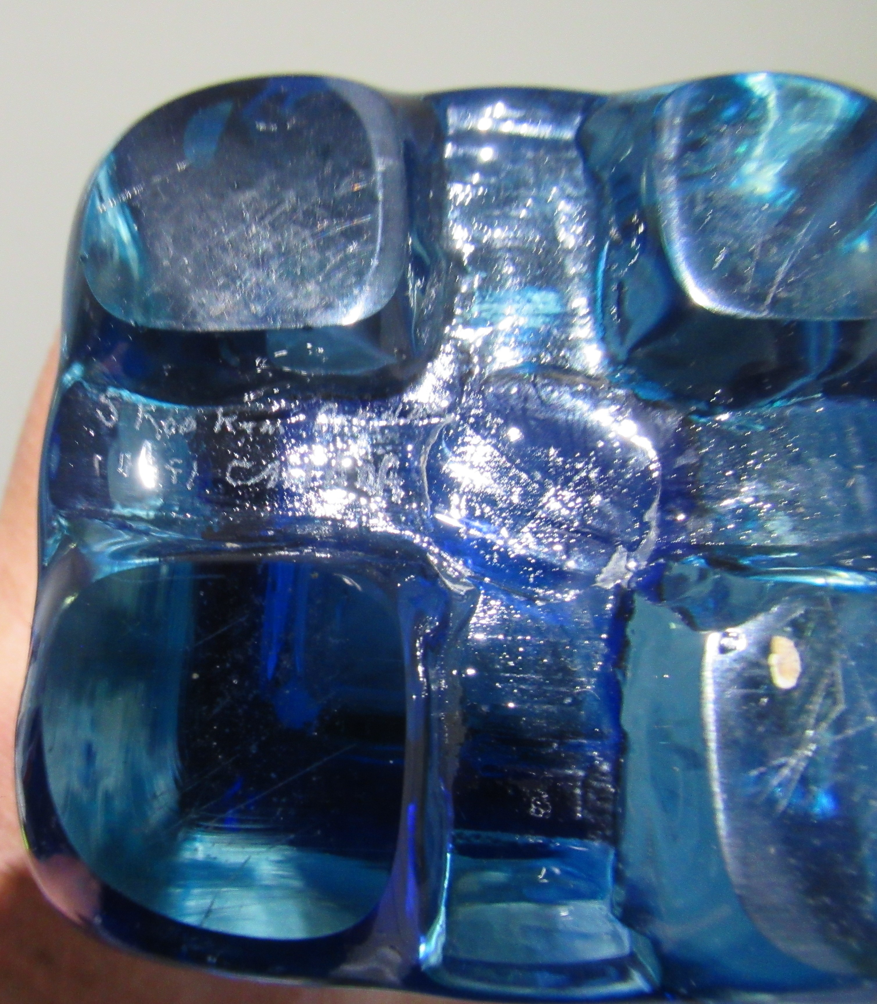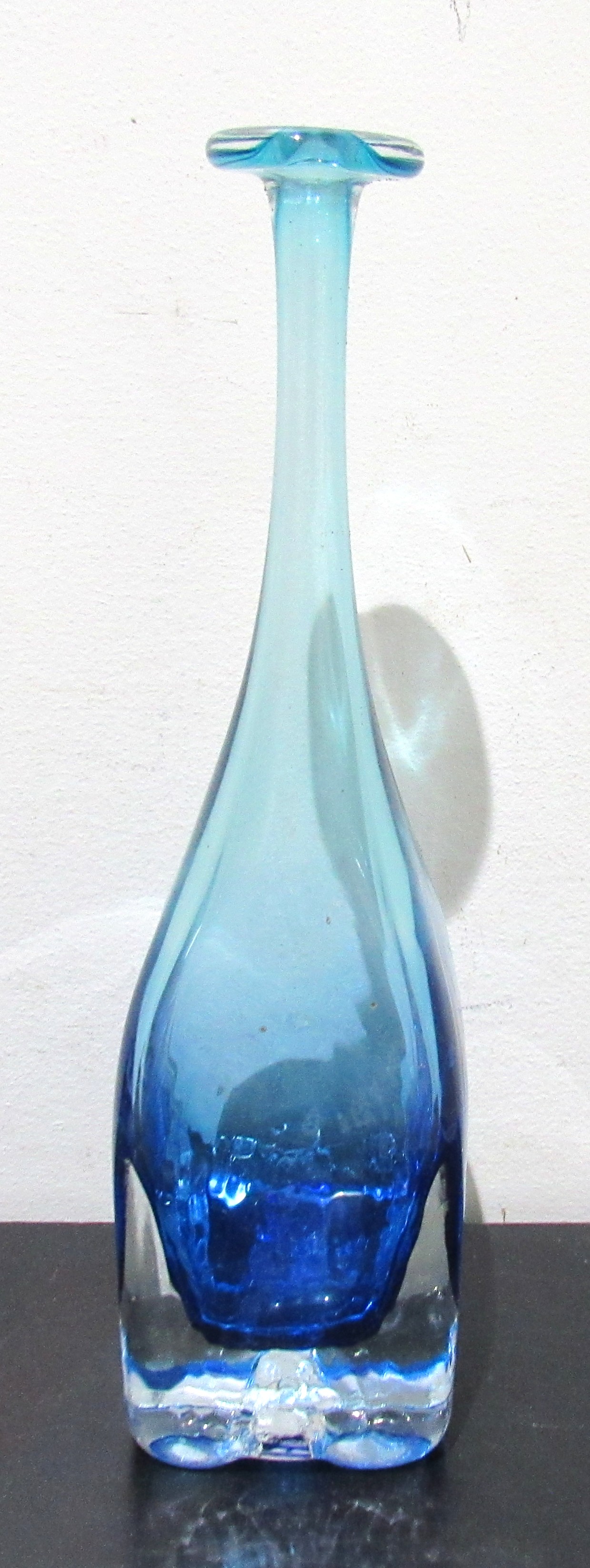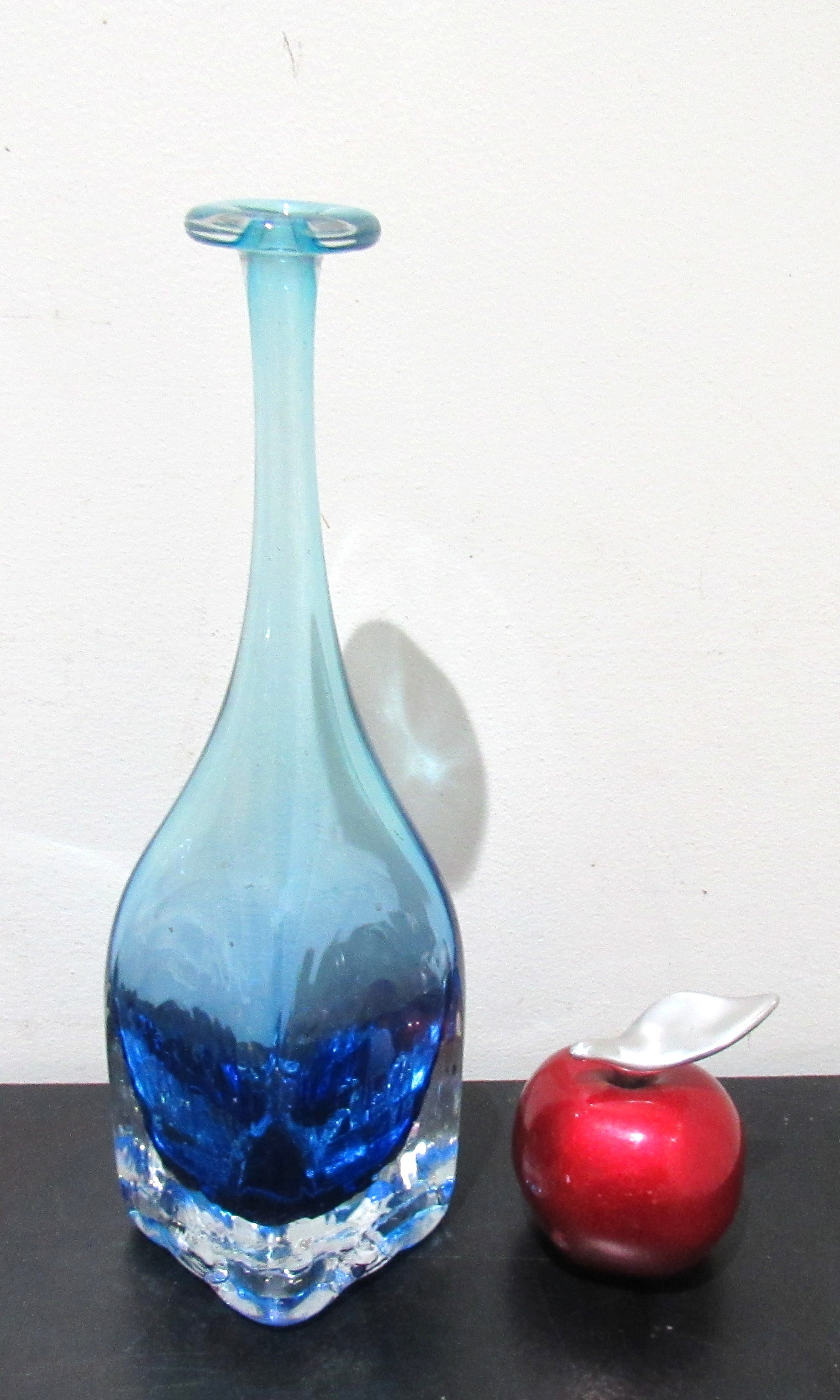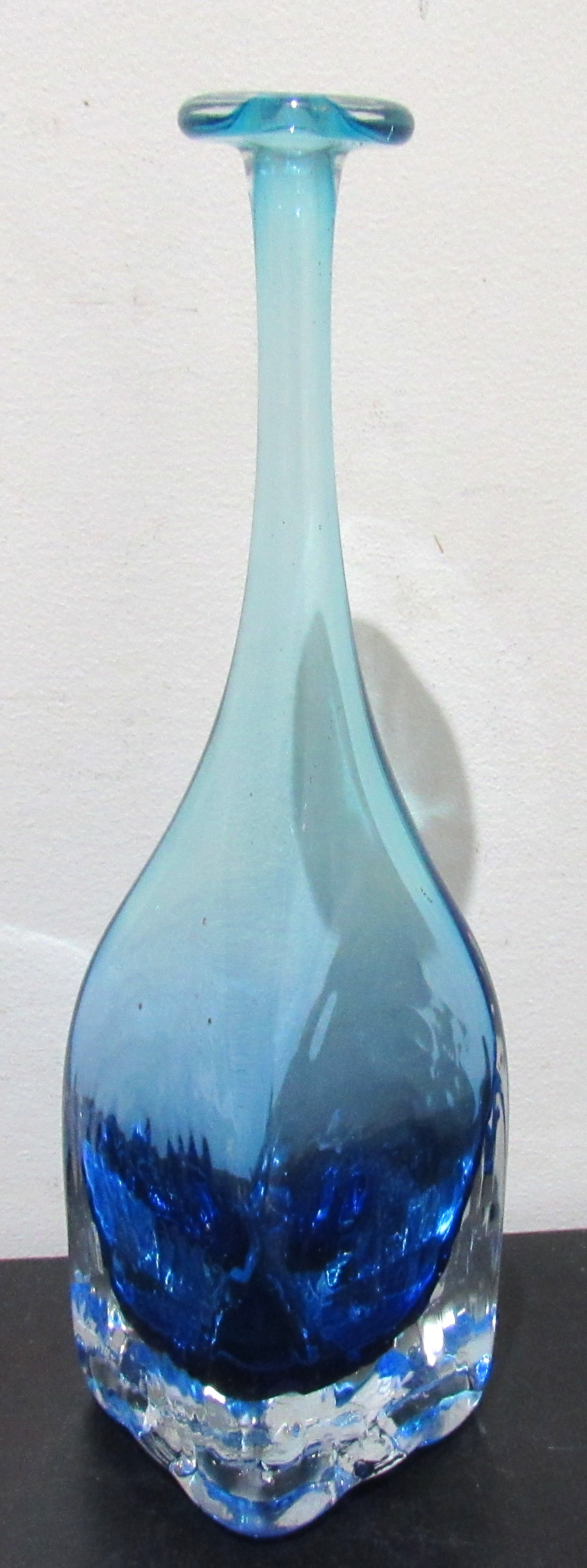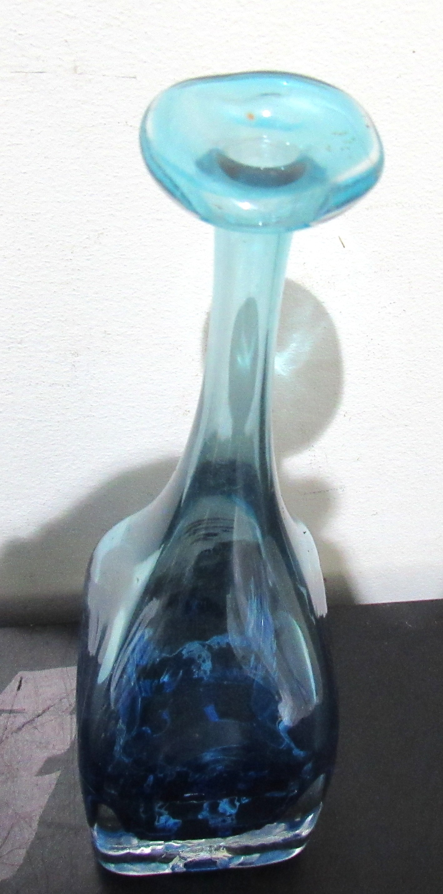 RARE FORM SIGNED SKOOKUM (ROBERT HELD) STUDIO GLASS VASE. 10" HIGH.