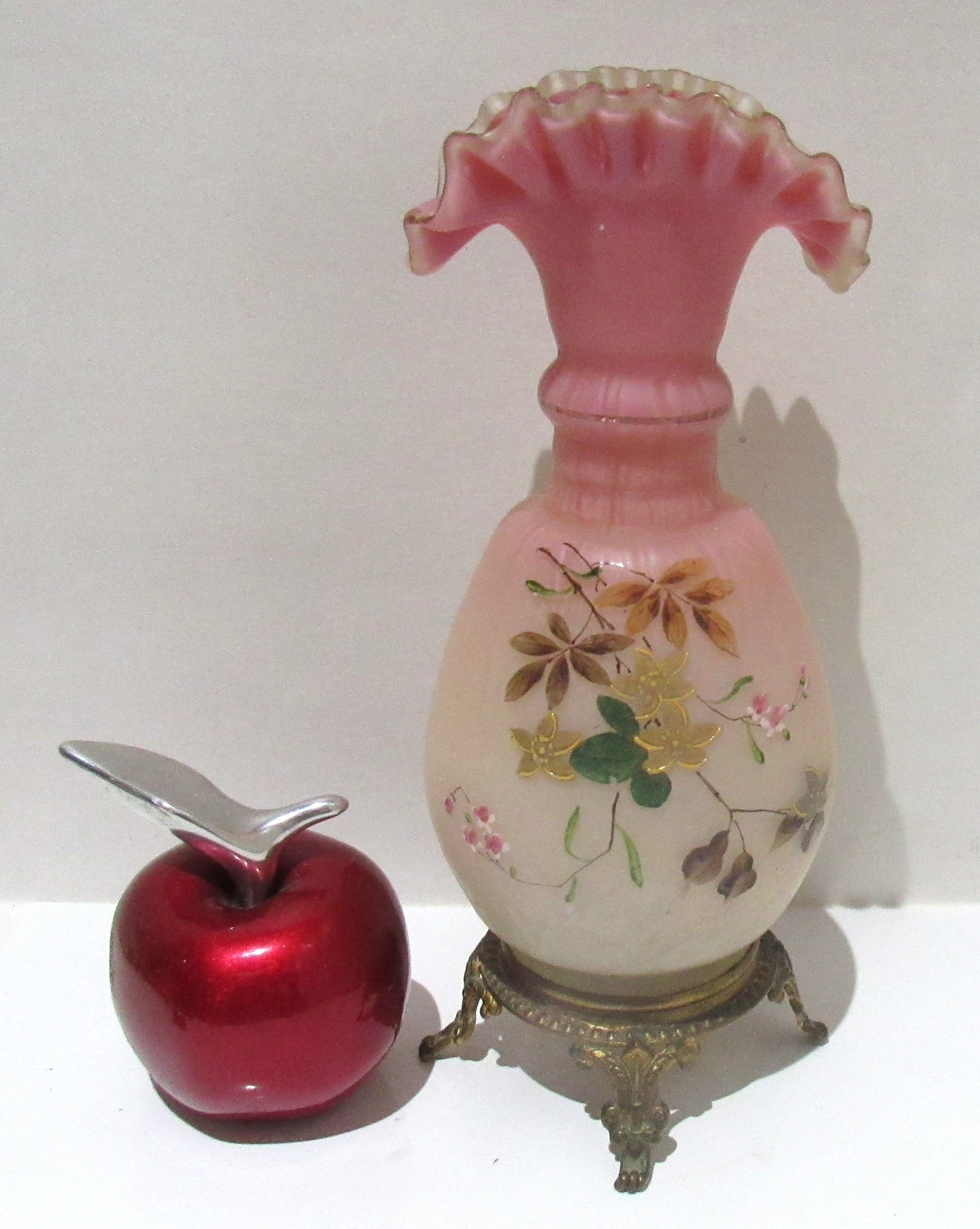 VICTORIAN CASED GLASS VASE WITH ENAMEL DECORATIONS.
