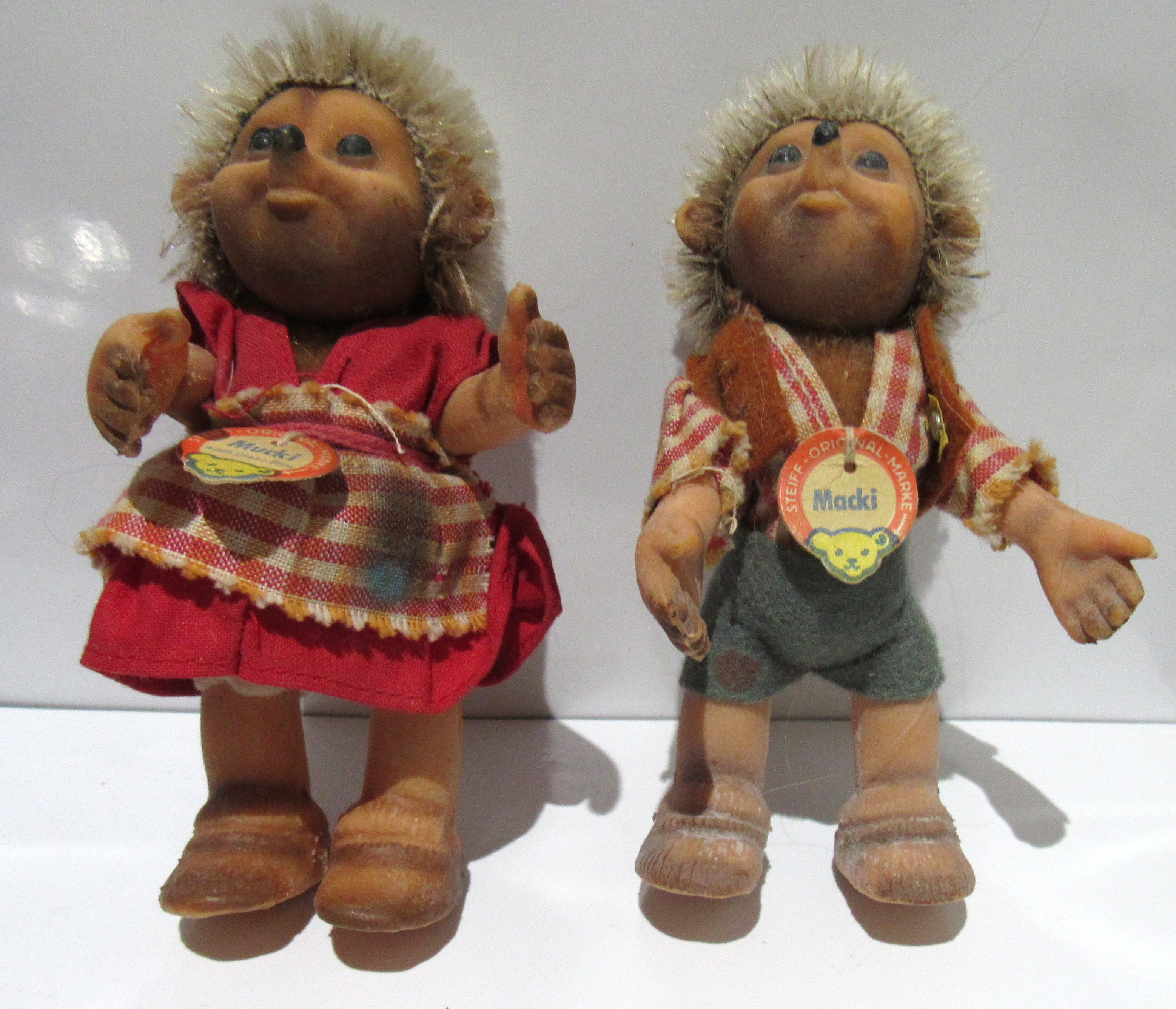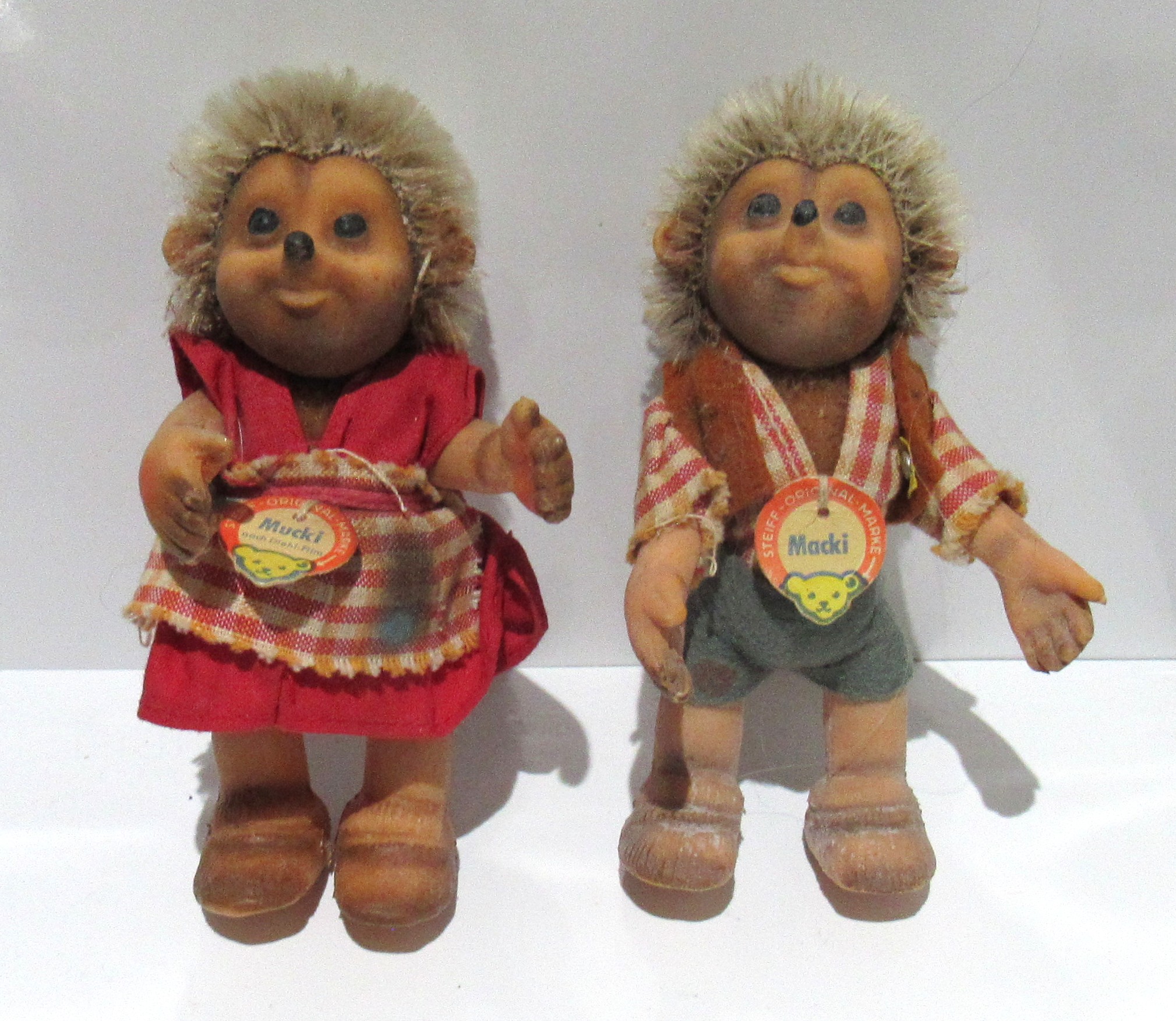 PAIR STEIFF HEDGEHOGS. MUCKI & MACKI. EXC. CONDITION. SMOKE & PET FREE HOME.