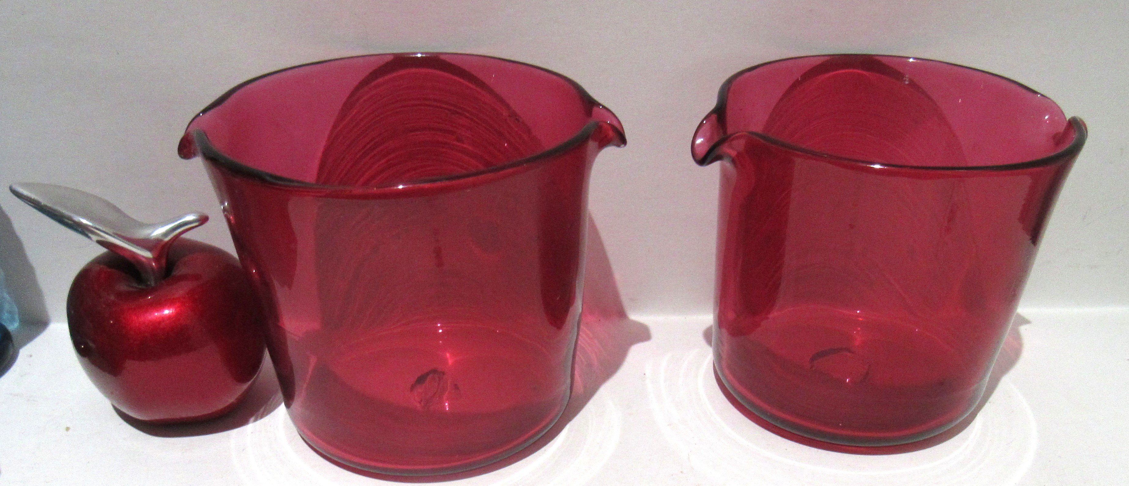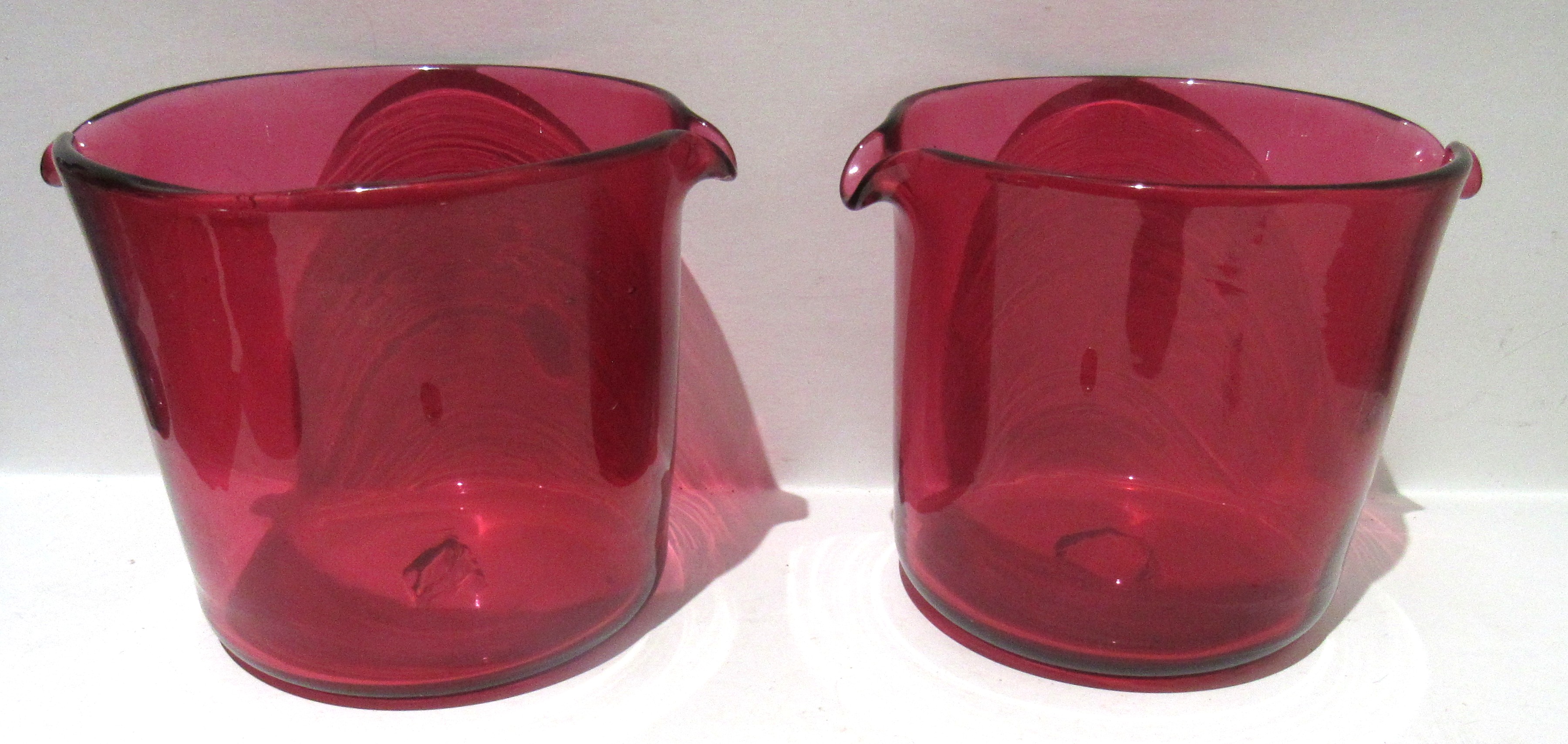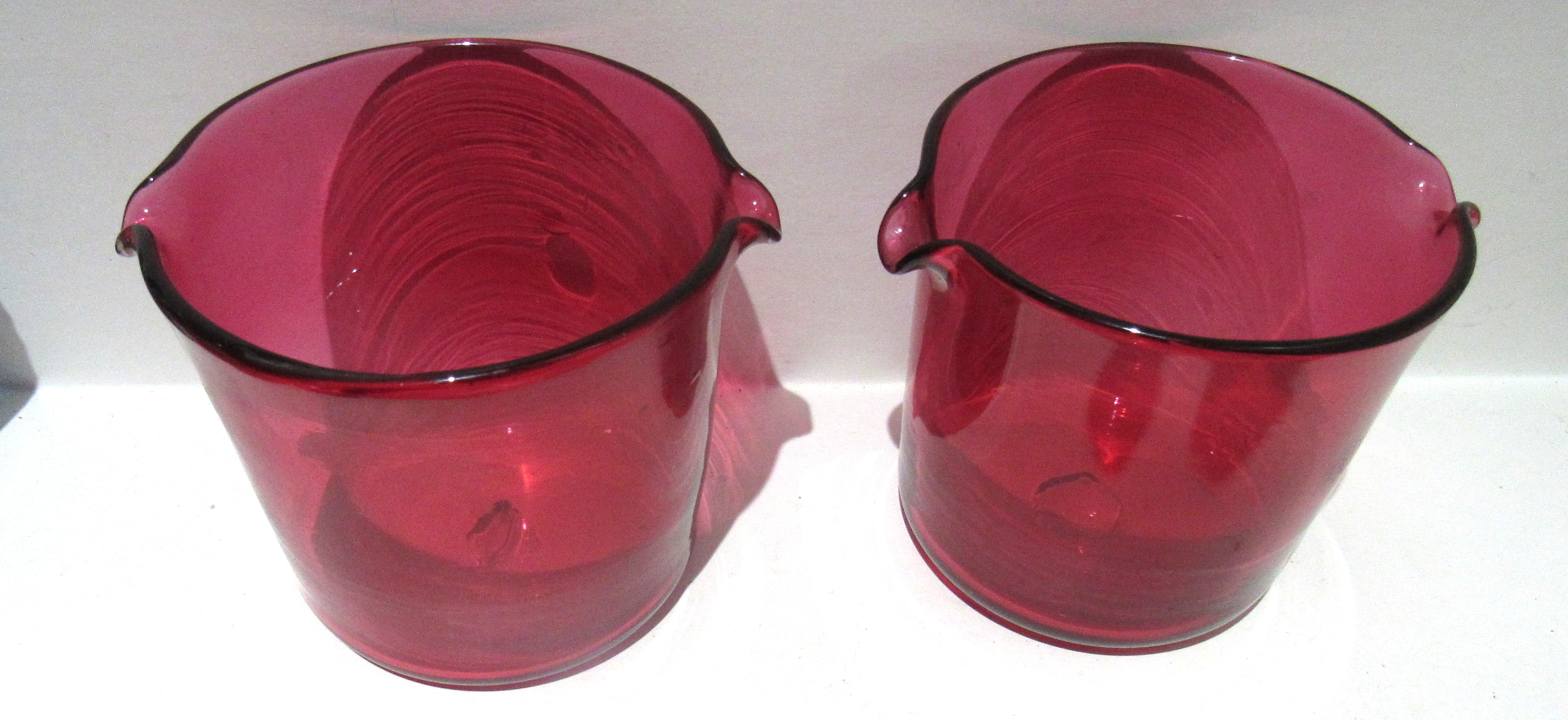 MATCHED PAIR GEORGIAN/VICTORIAN CRANBERRY GLASS WINE RINSERS.